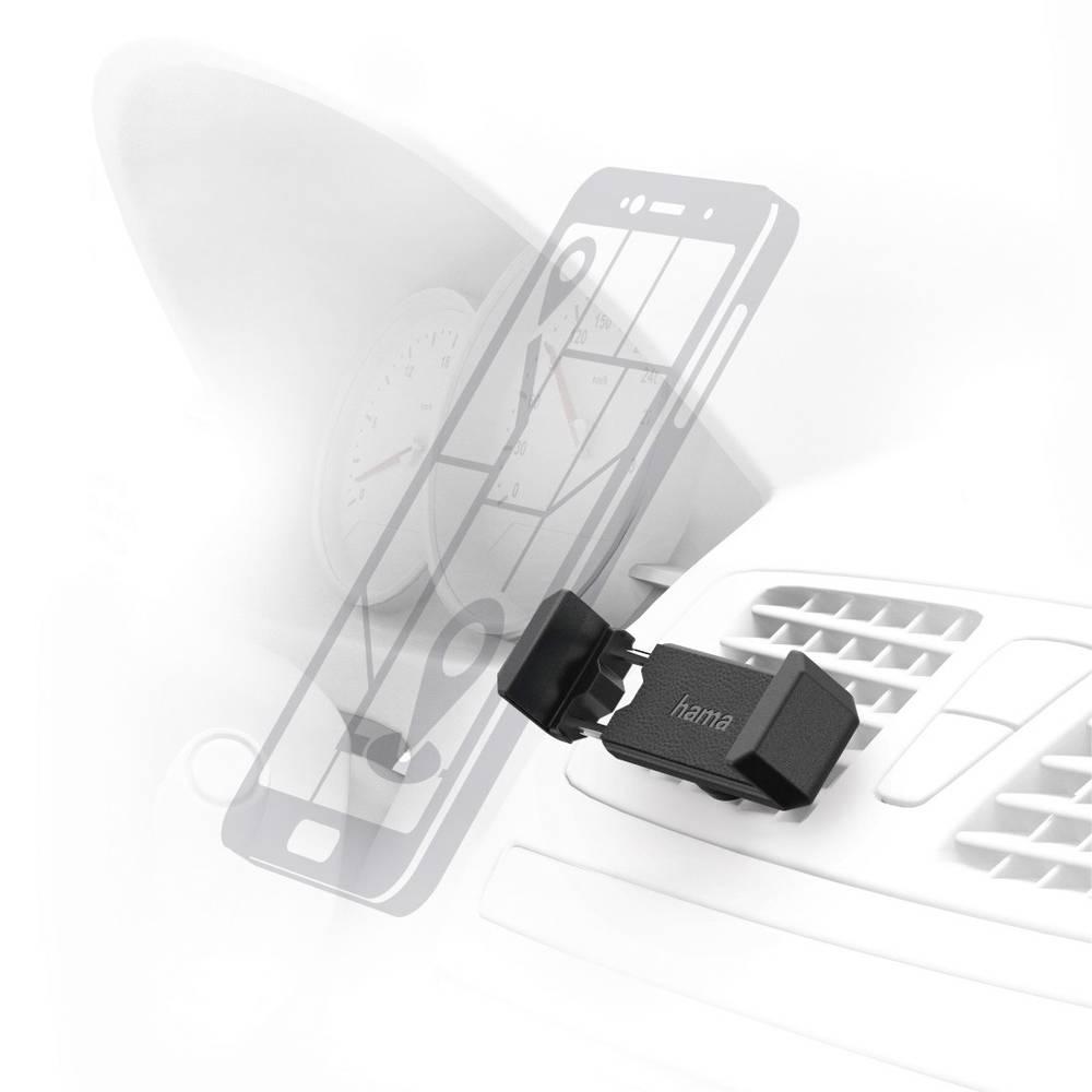 The smartphone holder is attached to the ventilation outlet without gluing or drilling, so it fits in almost every car and can be easily removed when needed