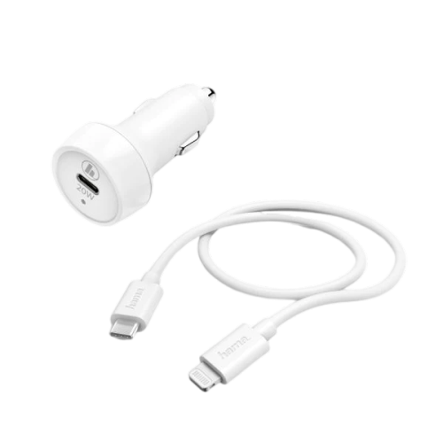 Hama Car Charging Kit Lightning PD 20W with Type-C to Lightning Cable -White