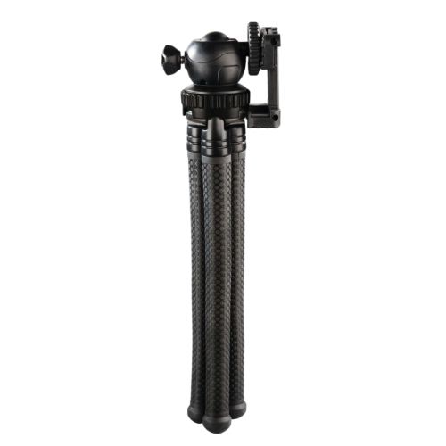 Flexible camera tripod for exceptional recordings with a smartphone, GoPro and photo camera