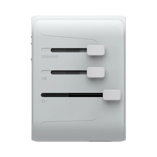 An universal travel charger with Built-in JP/US, AU, EU, UK sockets.