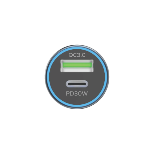 Metallic Finishing Sleek and subtle design that enhances the user touch and trial experience Premium tone and manner, anti-scratch and anti-paint peeling finishing Double Speedy Charging Supports QC3.0 + PD 30W fast charging Compatible with most electronic devices Supports charging needs of mobile & tablet. etc Dimension - 24.5 x 47.5 mm Input - 12-24V = 4A (max.) USB-C Output - 5V = 3A, 9V = 3A, 12V = 2.5A (30W max.) USB-A Output - 5V = 3A, 9V = 2A, 12V = 1.5A Total Output - 30W Materials - ABS + Aluminum
