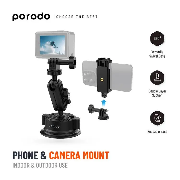 Porodo Phone & Camera Mount Indoor & Outdoor USE Black