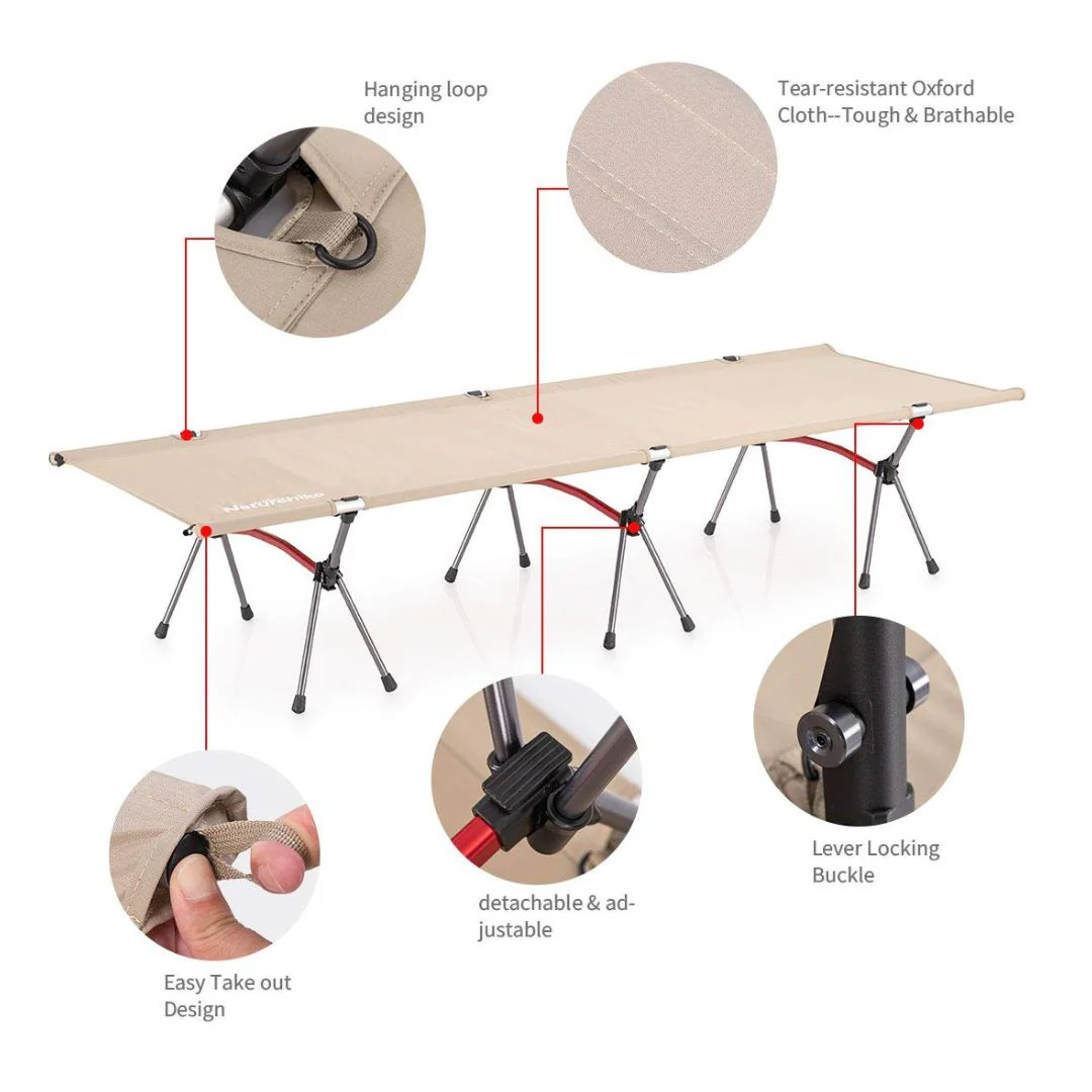 Naturehike XJC04 Ultralight Foldable Camping Cot Q-9E - Khaki Single (190*65*38)