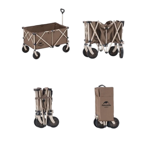Naturehike TC02 (light Folding) four-way folding trolley Thick Wheels - Linen Brown Brakes