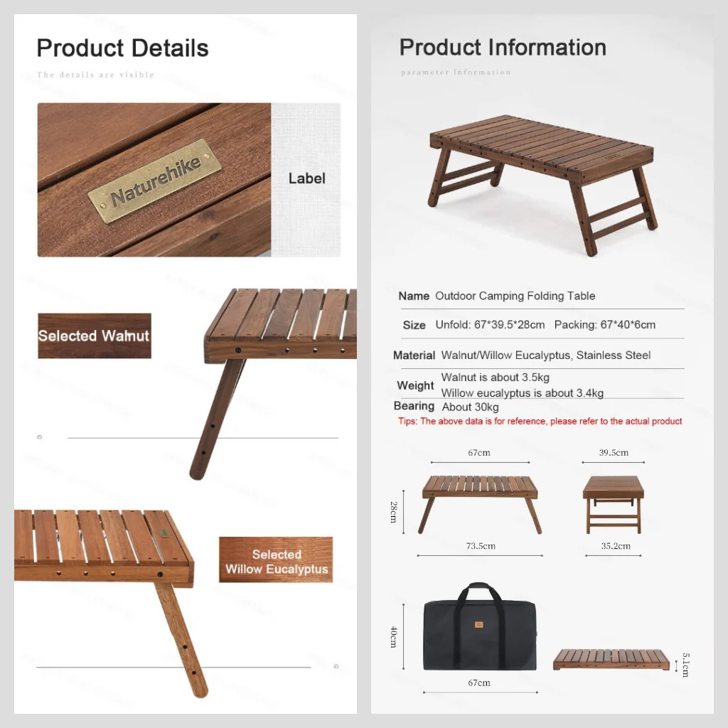 Naturehike Outdoor Camping Folding Wooden Table -Burlywood