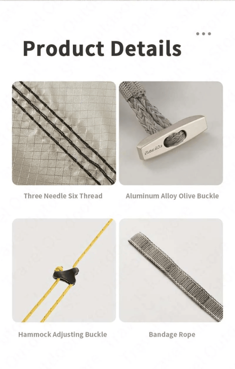 Weight : 265gr (Hammock) / 140gr (Hanging Bag)