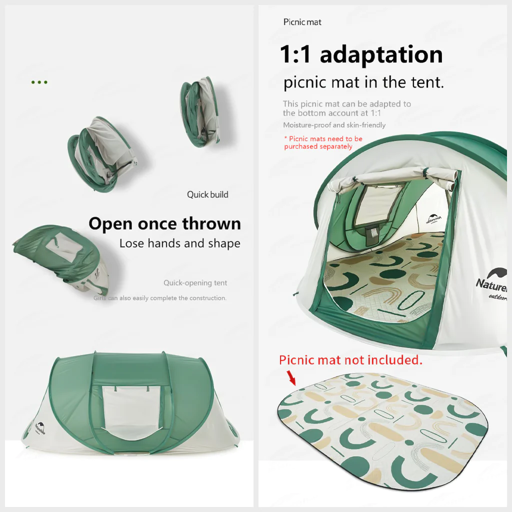 Naturehike 3-4 hand pop up automatic tent - Green&Grey