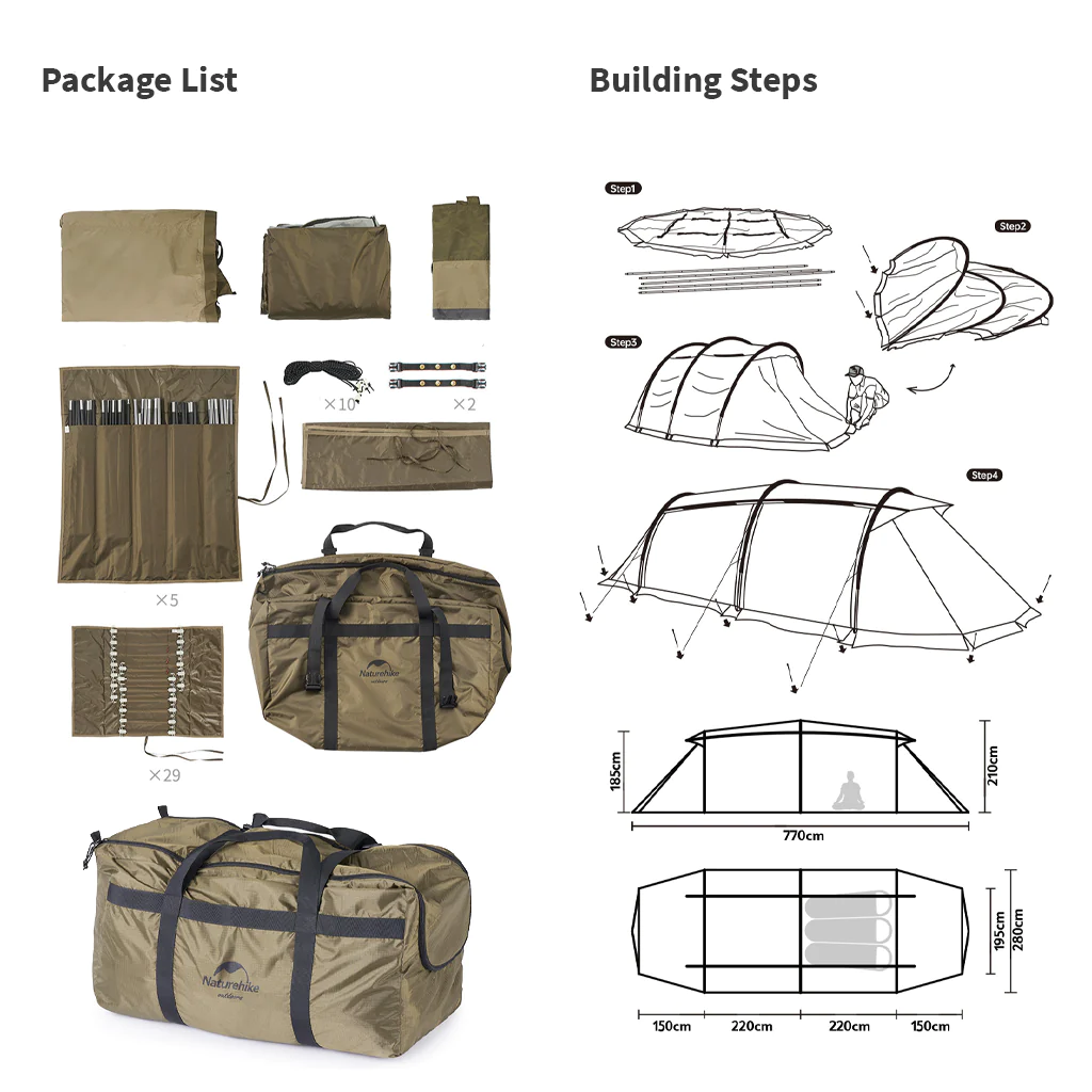 Naturehike Aries Alpha (Alpha) tunnel tent- Khaki