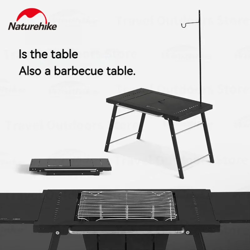 Naturehike Multifunctional Travel Barbecue Table - Black (Square Tube,Lamp Pole Style)