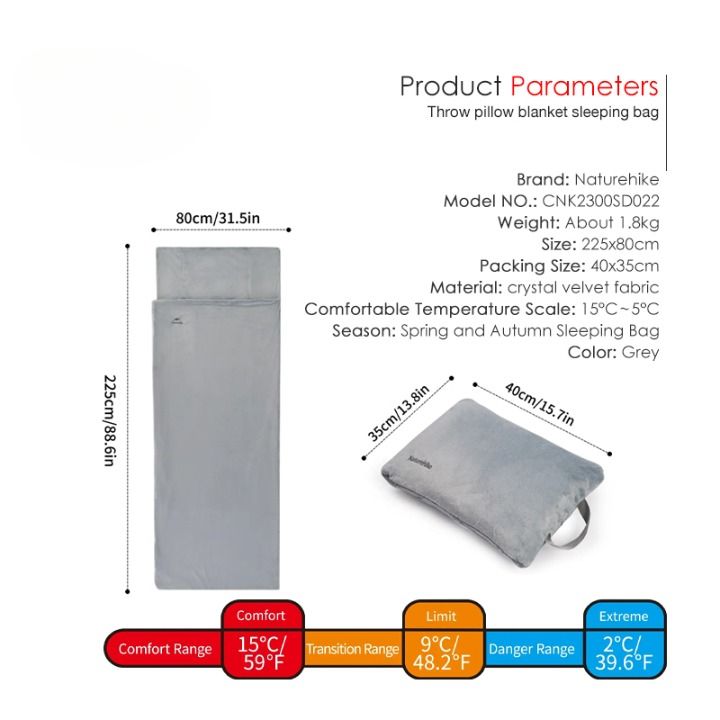 Naturehike Fluffy Velvet Pillow Blanket Sleeping Bag Liners - Stone Grey (225*80)