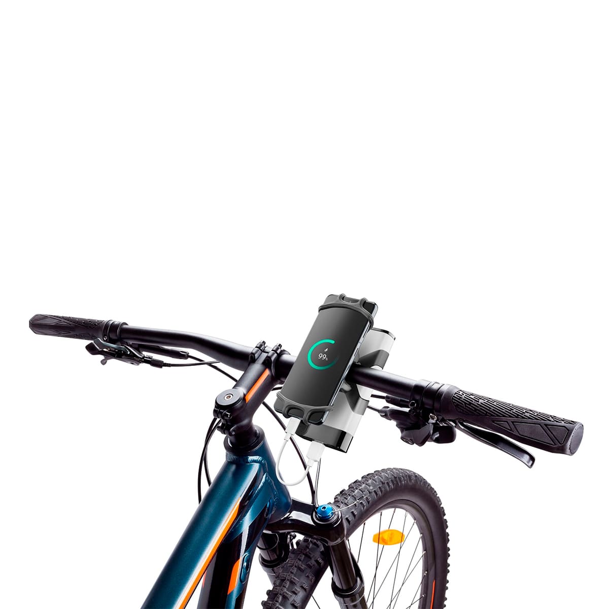 Dual stand, smartphone and power bank, you can charge your phone during the journey without any worry and in complete safety.