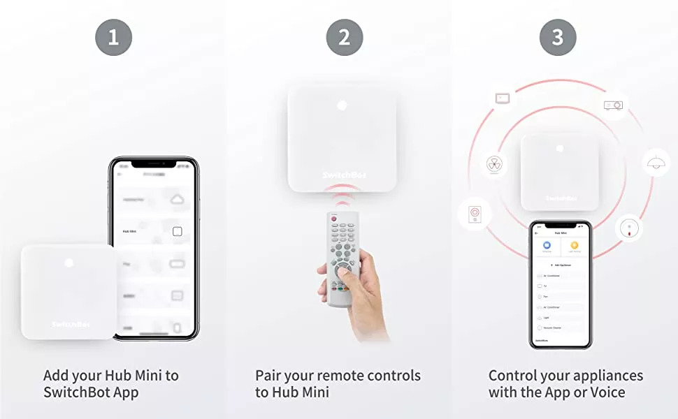 USB-powered & portable (SwitchBot Hub Mini only support 2.4GHz Wi-Fi.)