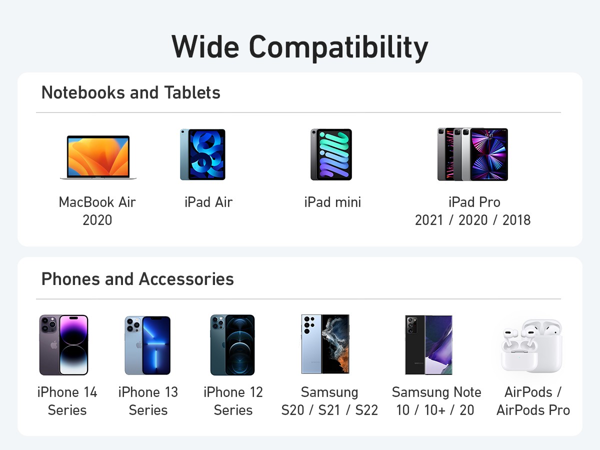 Equipped with 2 USB-C & 1 USB-A, you can easily charge up to 2 devices at once.