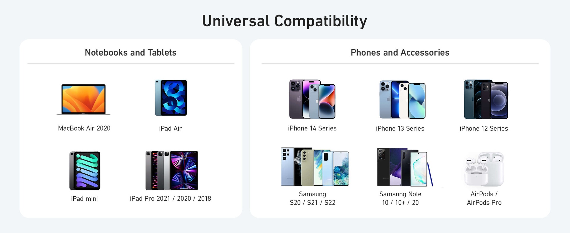 Equipped with 2 USB-C & 1 USB-A, you can easily charge up to 2 devices at once.