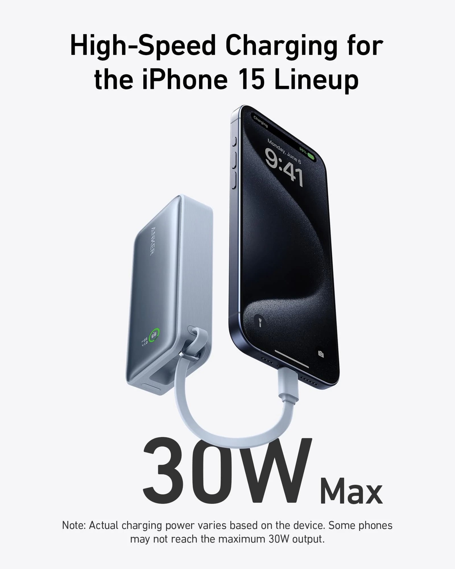 Anker Nano Power Bank (30W, Built-In USB-C Cable) 10000 PD -Blue