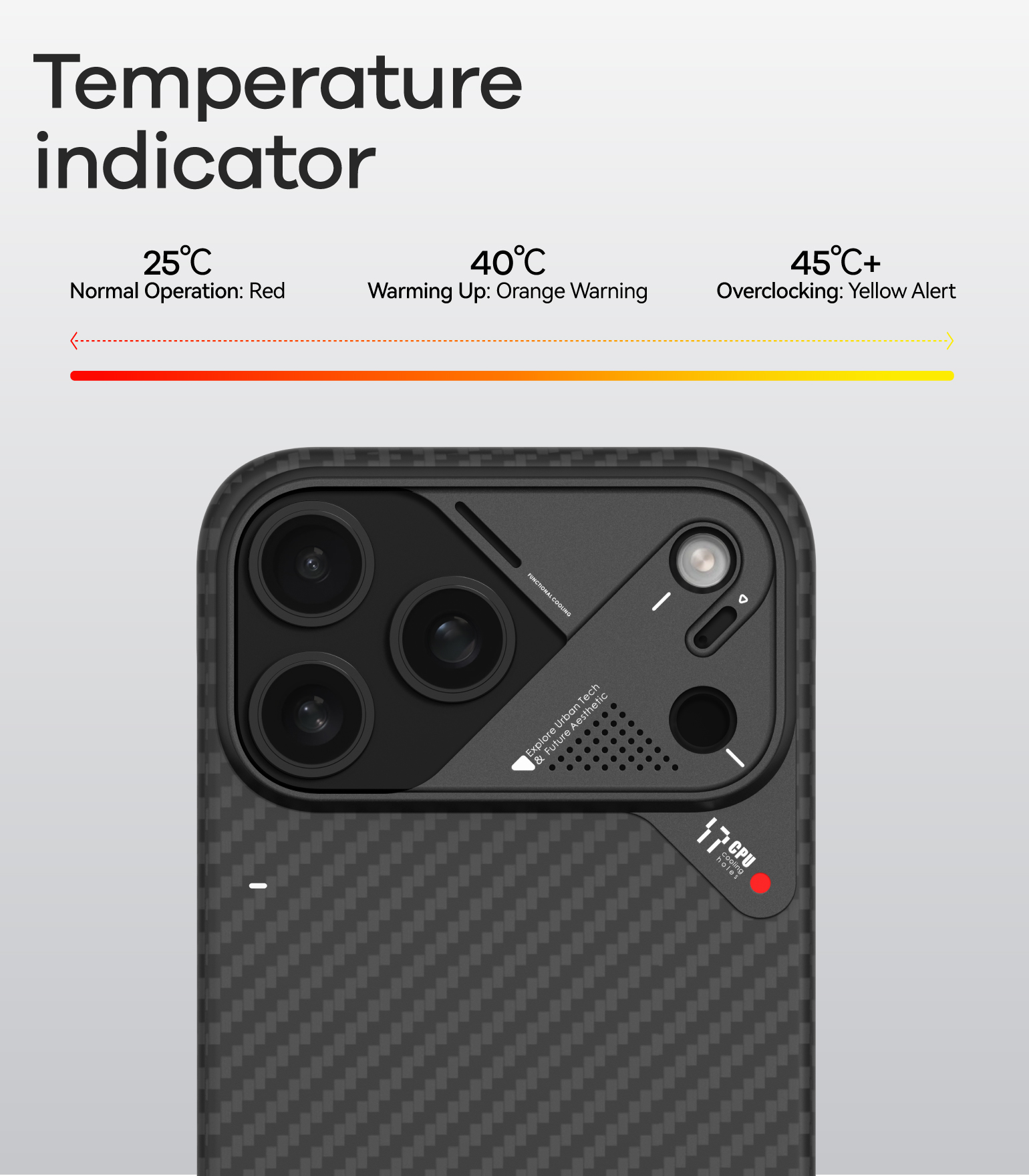 Heat-sensitive color-changing design – red at normal temperature, yellow as CPU heats up (*not applicable to iPhone Air)