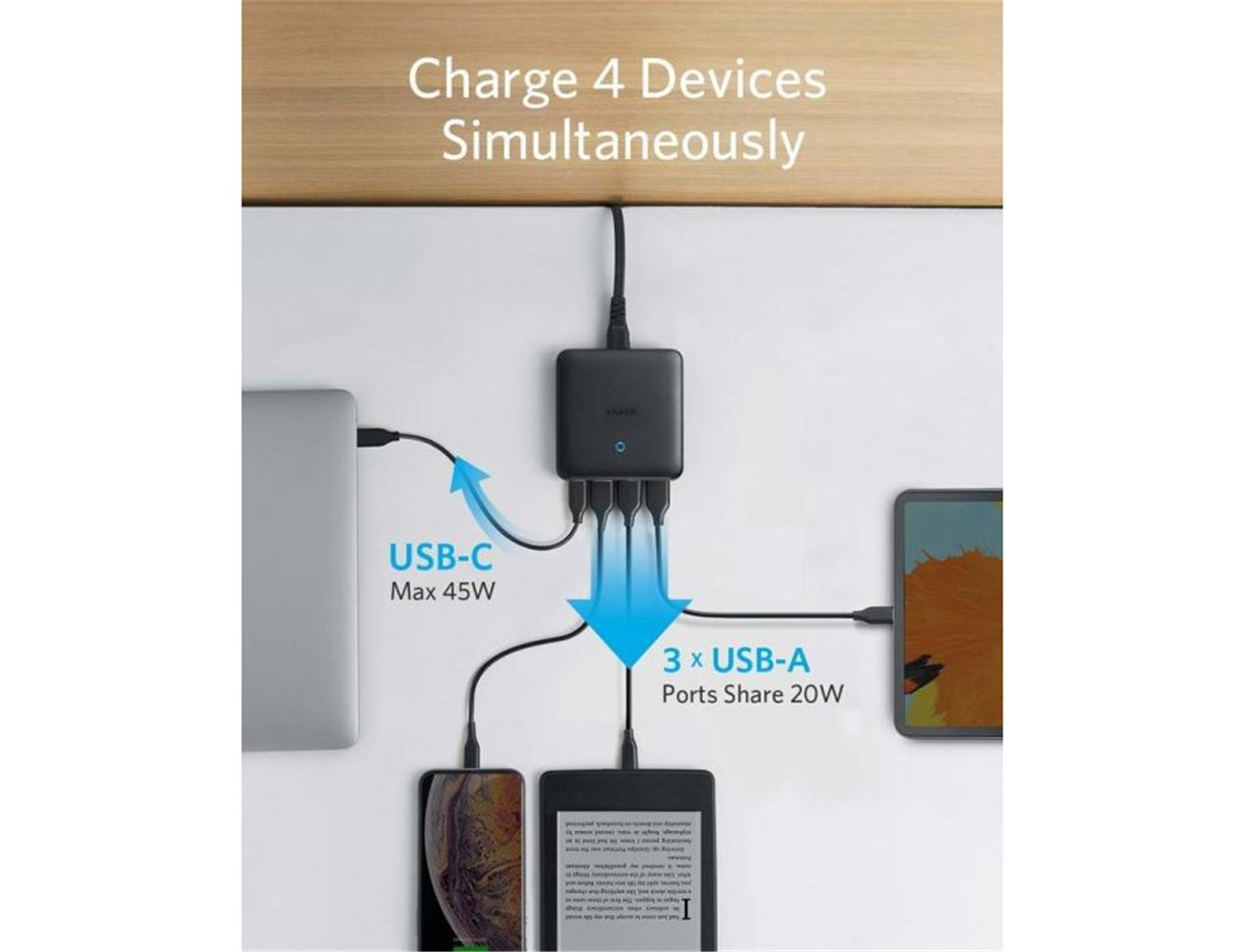 Charge 4 Devices with type-c port 45W and 3 USB ports 20W