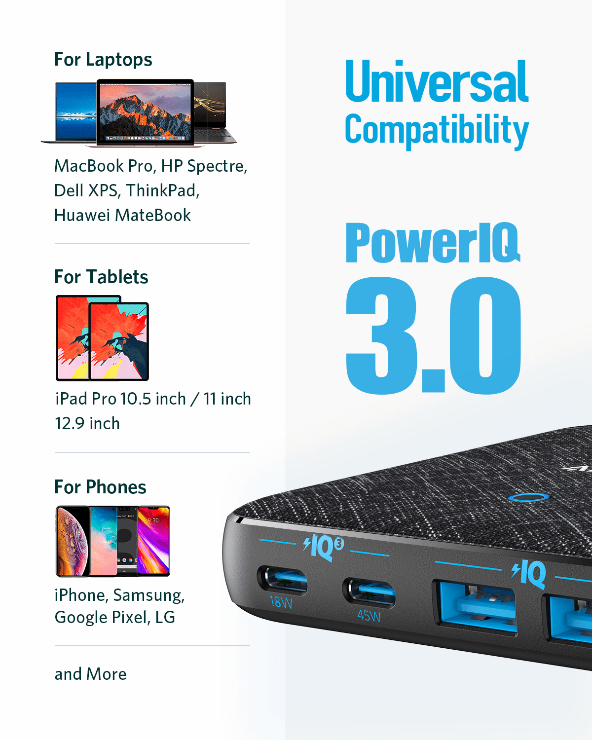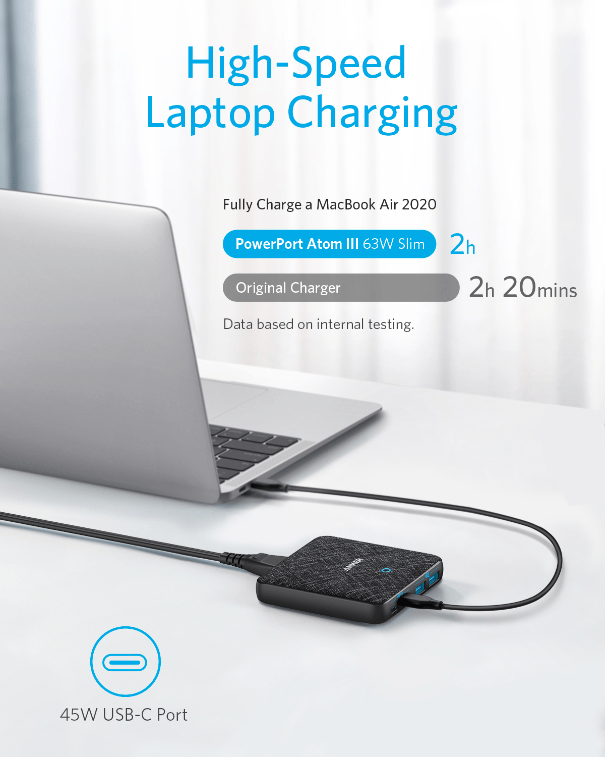 Charge USB-C notebooks at high-speed via the 45W USB-C port