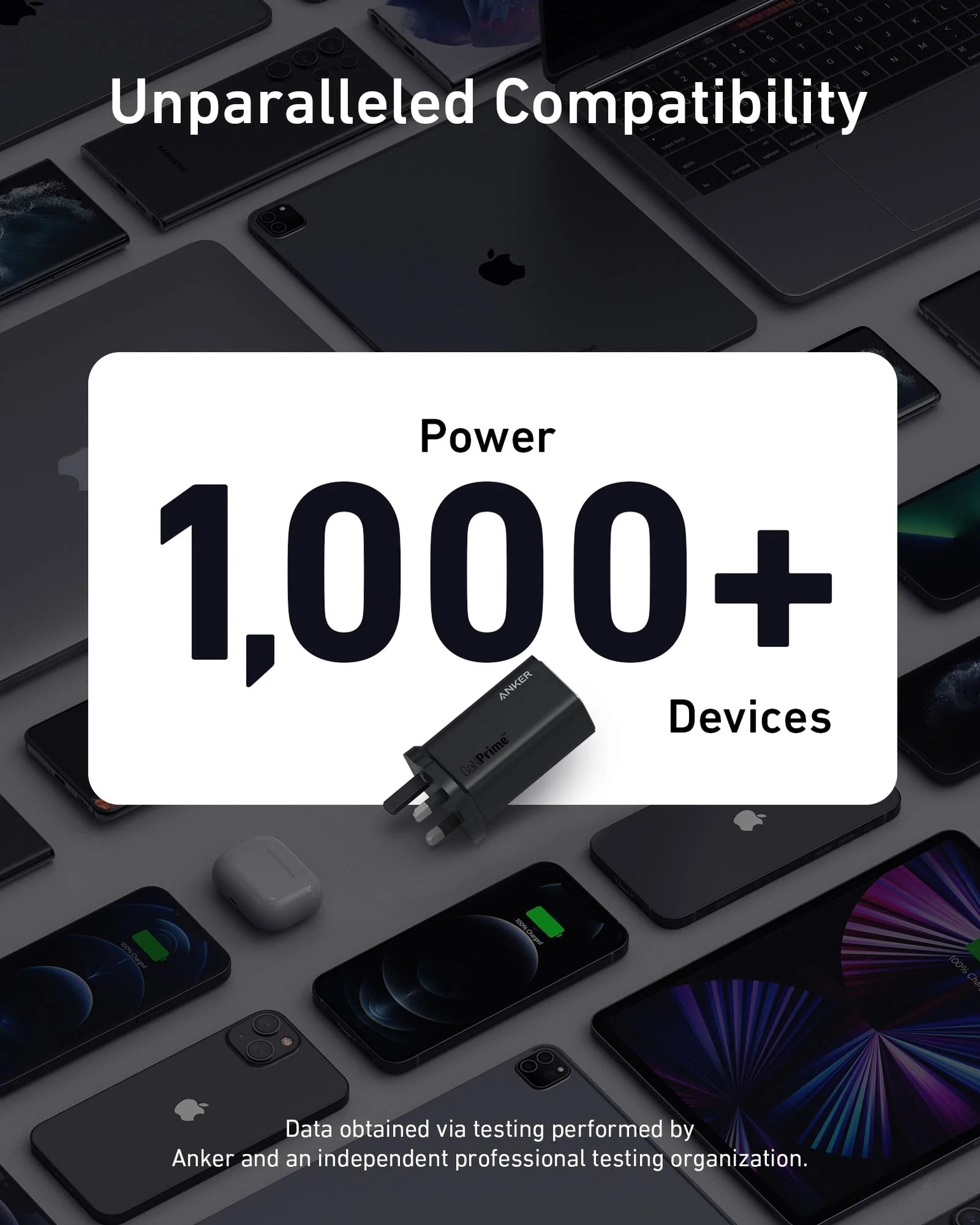 Equipped with 2 USB-C ports and one USB-A port, you can charge your phone, tablet, and notebook all at once from a single charger.
