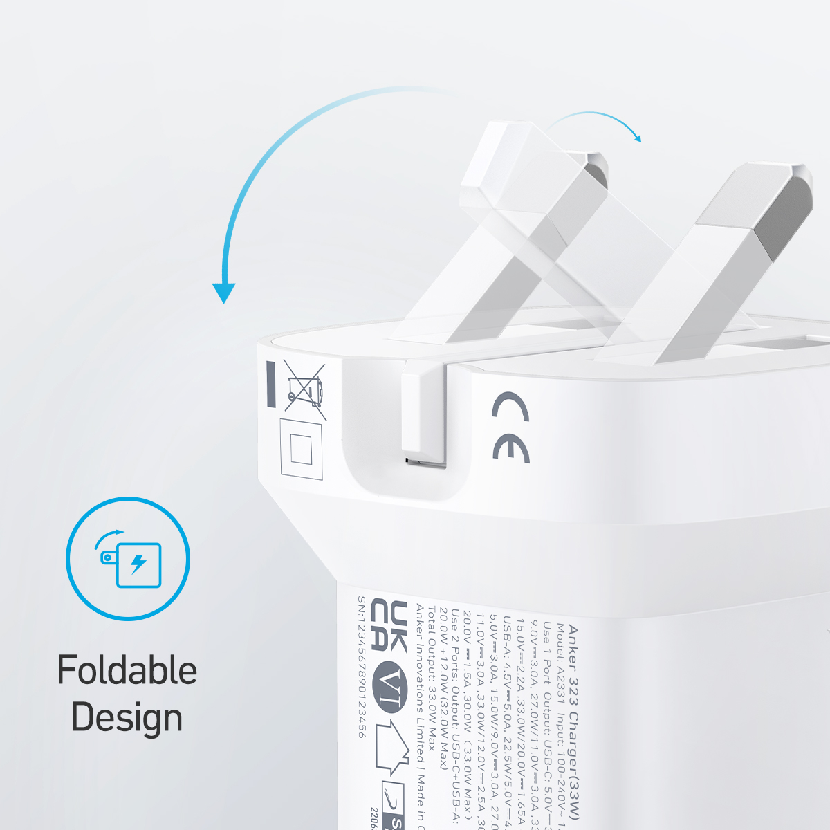 Equipped with a 33W USB-C Power Delivery port to charge phones, tablets.