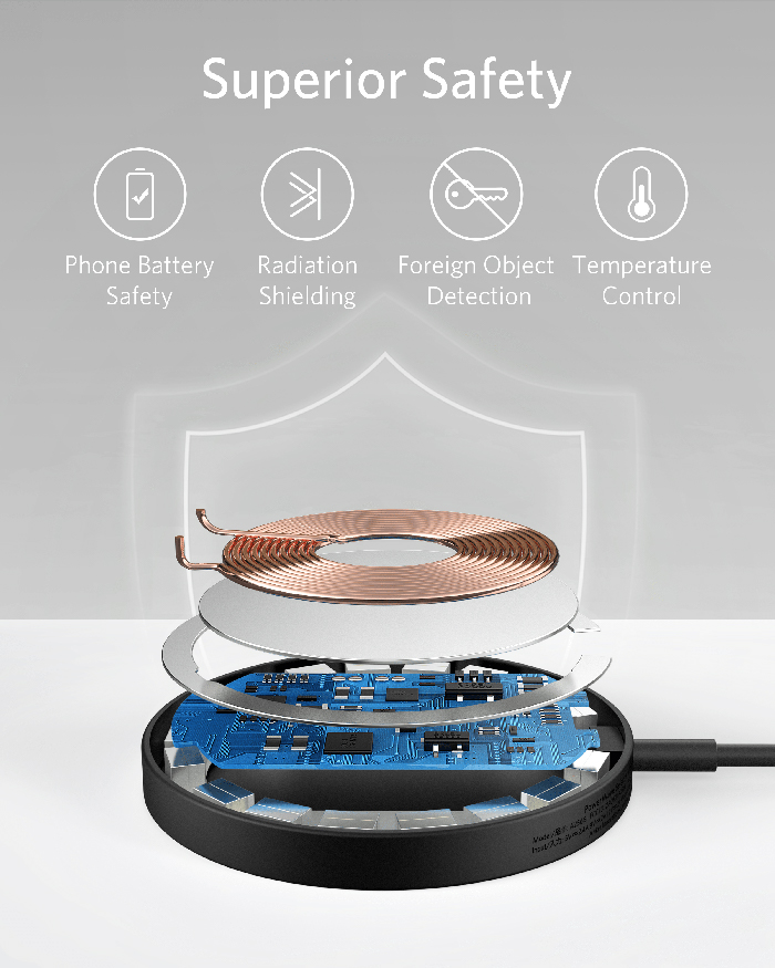 Provides 10W output for Samsung Galaxy, 7.5W for iPhone, & 5W for wireless earbuds (including AirPods)