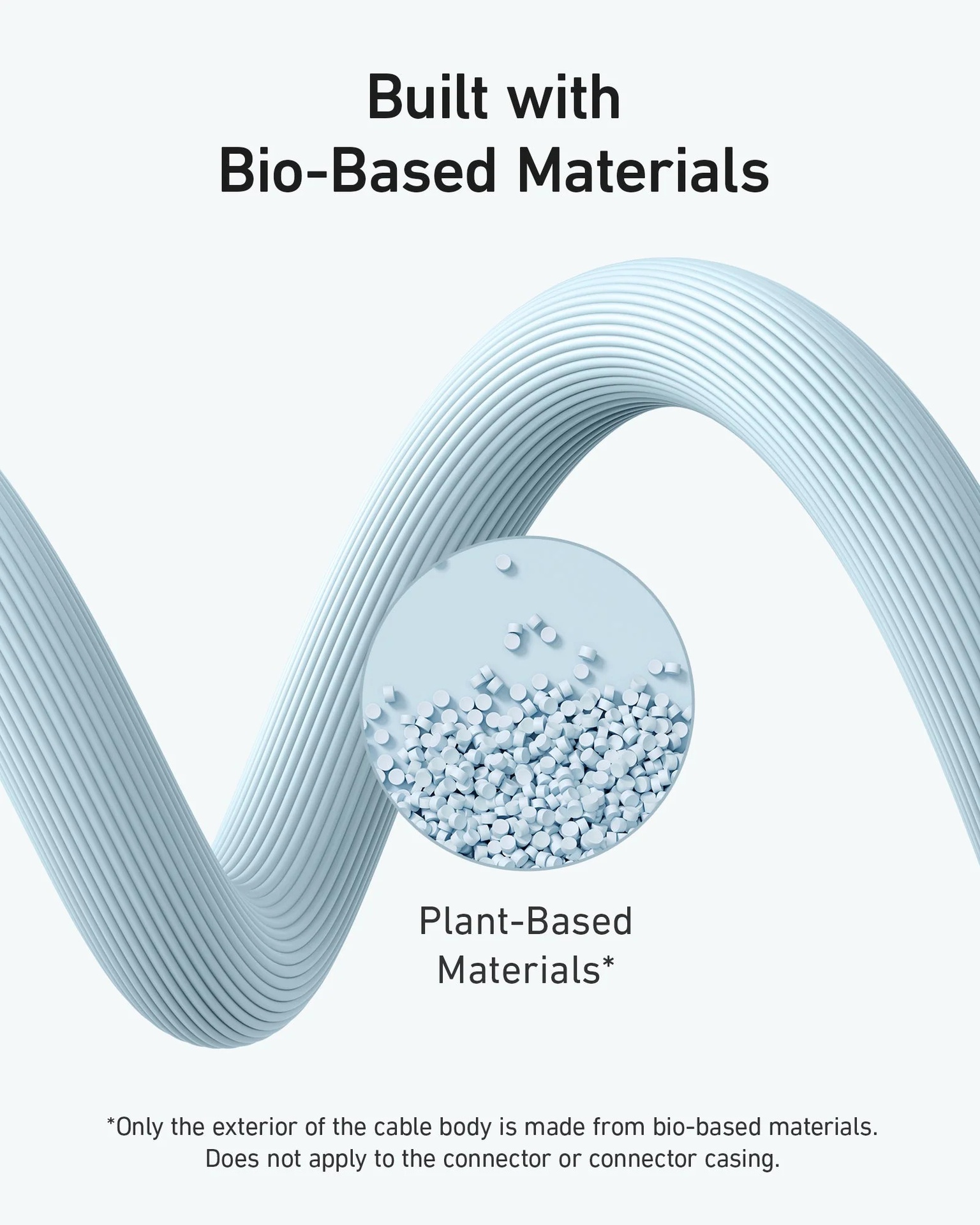 The exterior of bio-based cables is around 40% composed of a proprietary mixture of plant-based materials.