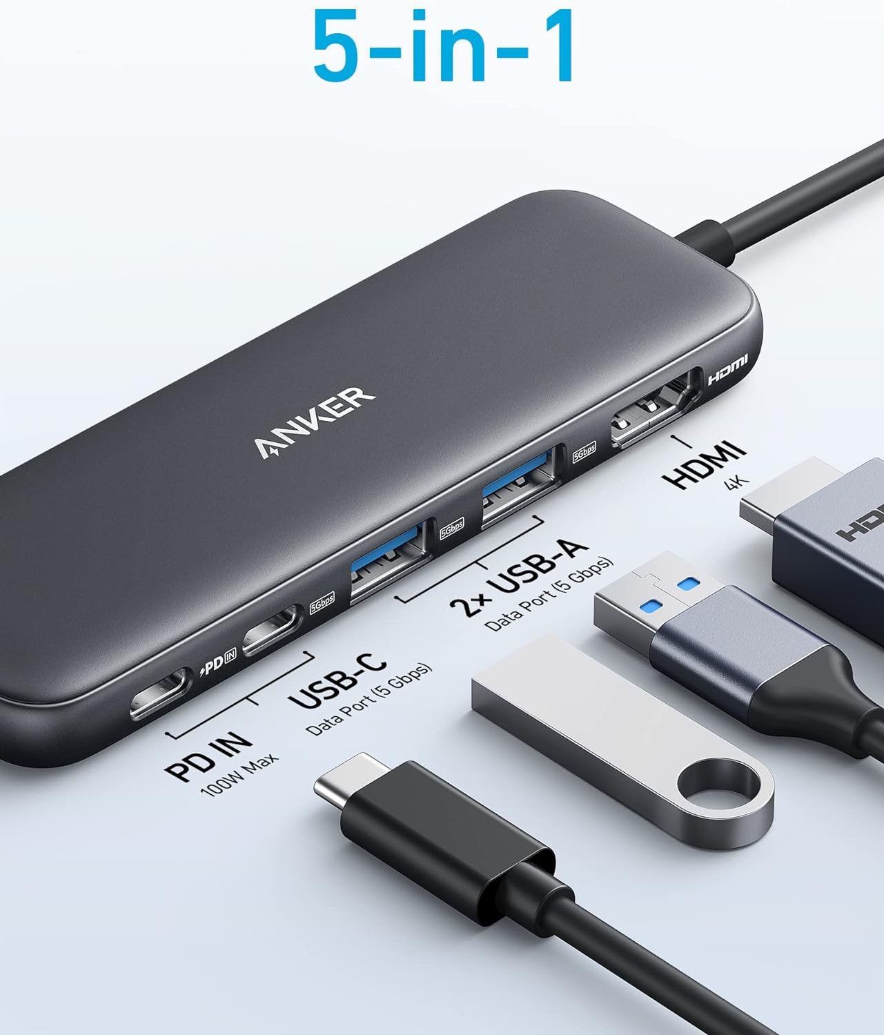 Equipped with a 4K HDMI port, a 5 Gbps USB-C data port, Two 5 Gbps USB-A ports, & a 100W PD-IN port.