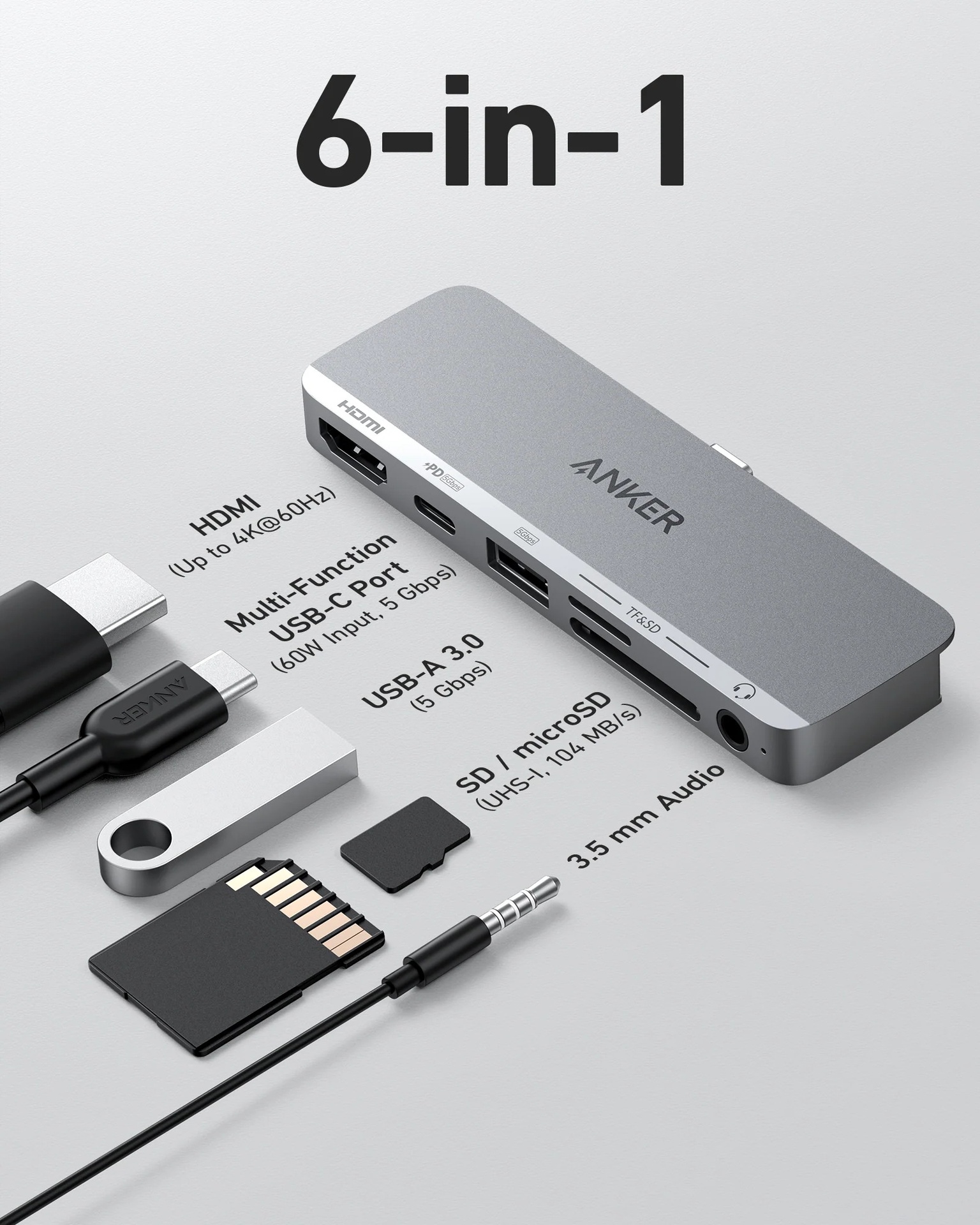 Anker 541 USB-C Hub (6-in-1, for iPad) - Gray