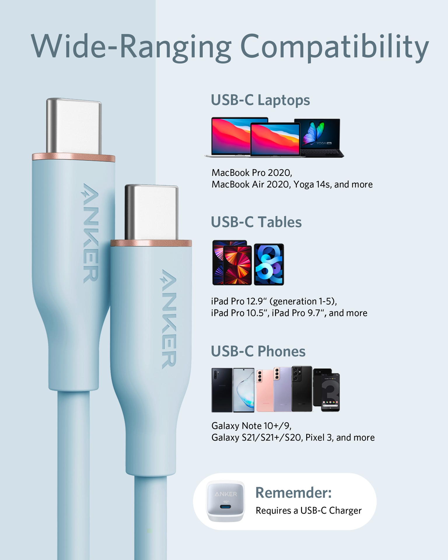 Anker PowerLine III Flow USB-C to USB-C 100W (0.9m/3ft) -Blue