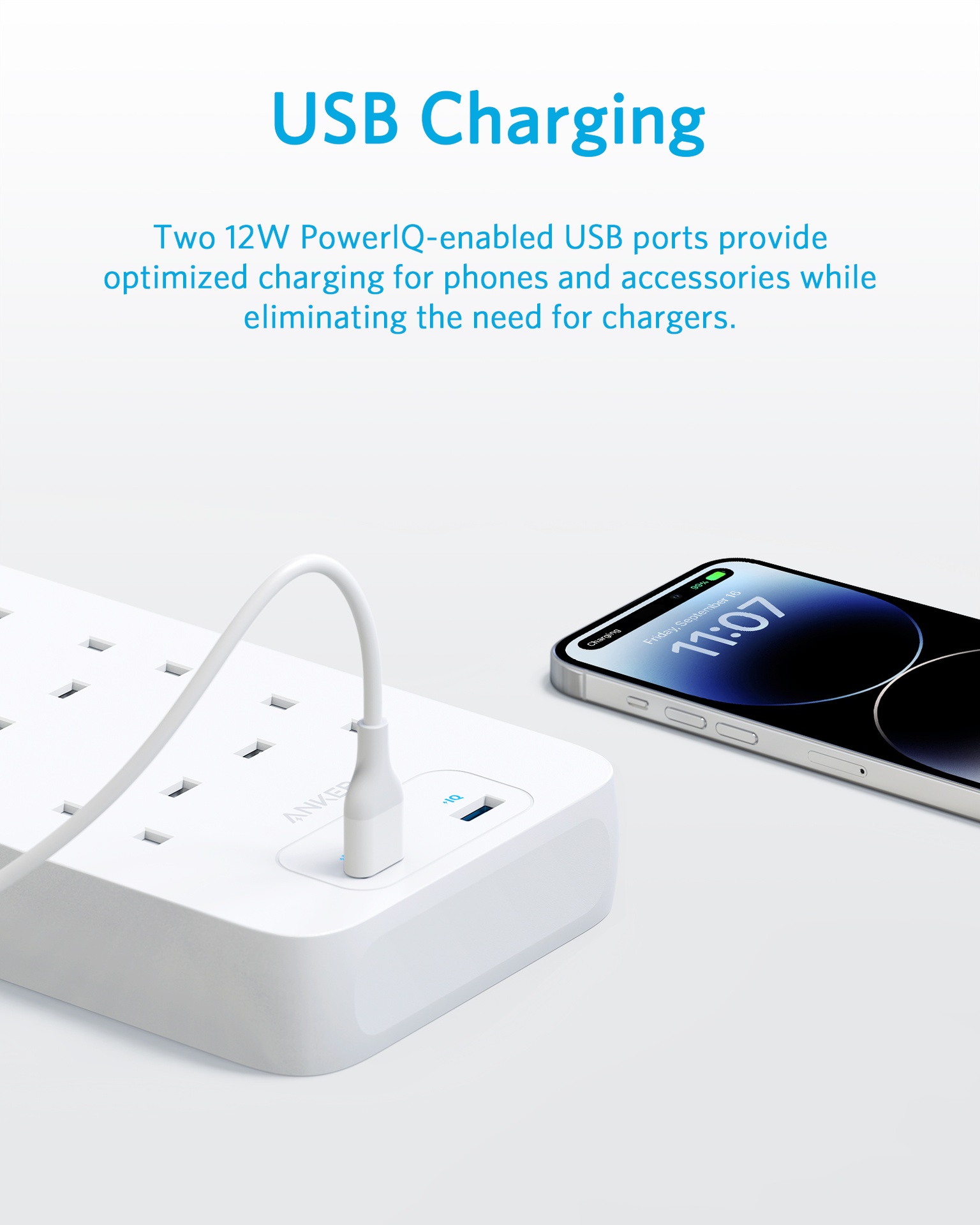 Two 12W PowerIQ-enabled USB ports provide optimized charging for phones & accessories
