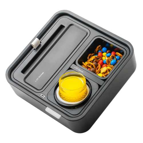 Self-balancing Cupholder, Snack Holder, Phone Stand, Charging Dock, Remote Tray, & Storage Pocket