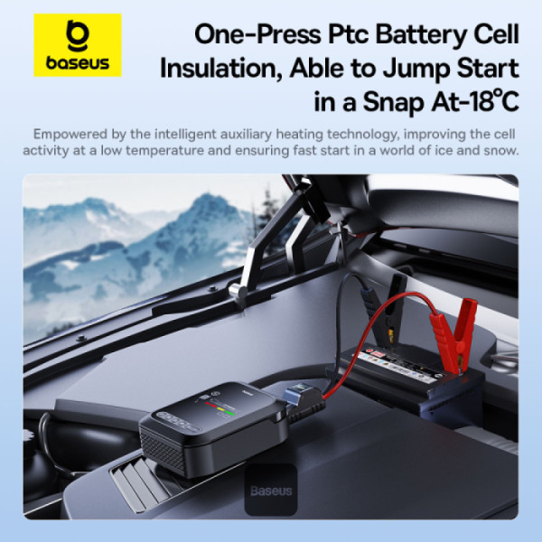 The Baseus Primetrip Jump Starter is built with 12 advanced safety protections, including overcharge, reverse polarity, and overcurrent safeguards, ensuring reliable and secure operation. Its real-time LED display monitors tire pressure, battery voltage, and remaining power, providing peace of mind during emergencies. Designed with a cold-resistant lithium battery, this car battery booster is reliable even in extreme temperatures (-18°C to 40°C), making it ideal for use in all weather conditions. With its compact design, this car power bank jump starter fits perfectly in your glovebox or trunk.
