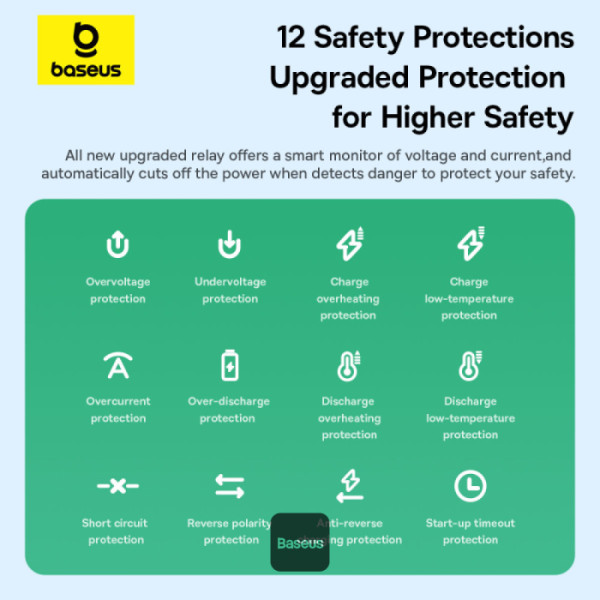 12 Advanced Safety Protections: Includes overcurrent, reverse polarity, overcharge, and more for secure and reliable operation every time.