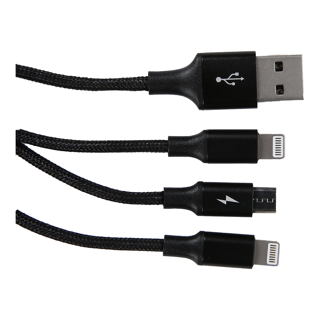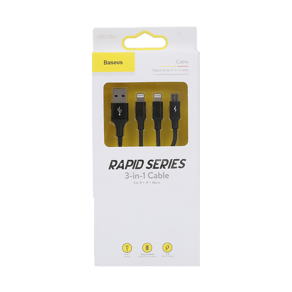 Home > Products > Baseus Rapid Series 3-in-1 Cable Micro+Dual Lightning 3A 1.2m Black
