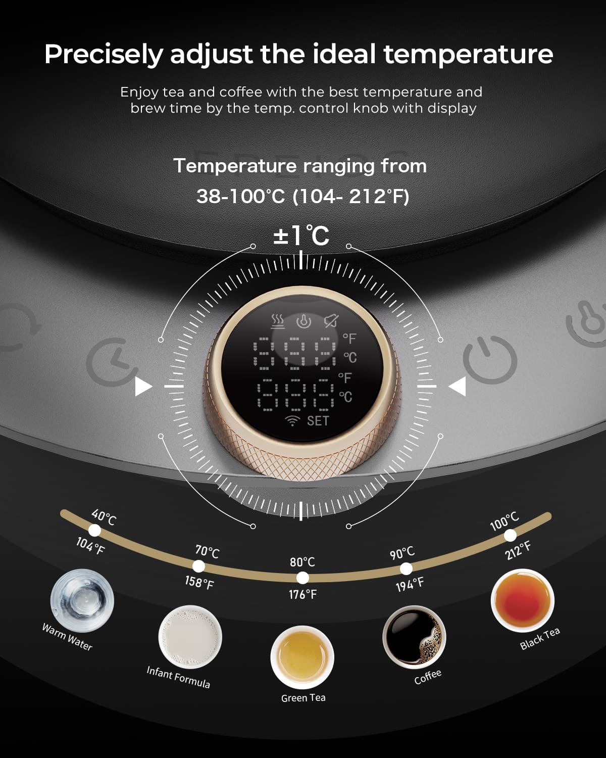 3. Adjust the temperature in 1°C increments from 38 to 100°C (100 to 212°F) to extract coffee and pursue dedicate taste