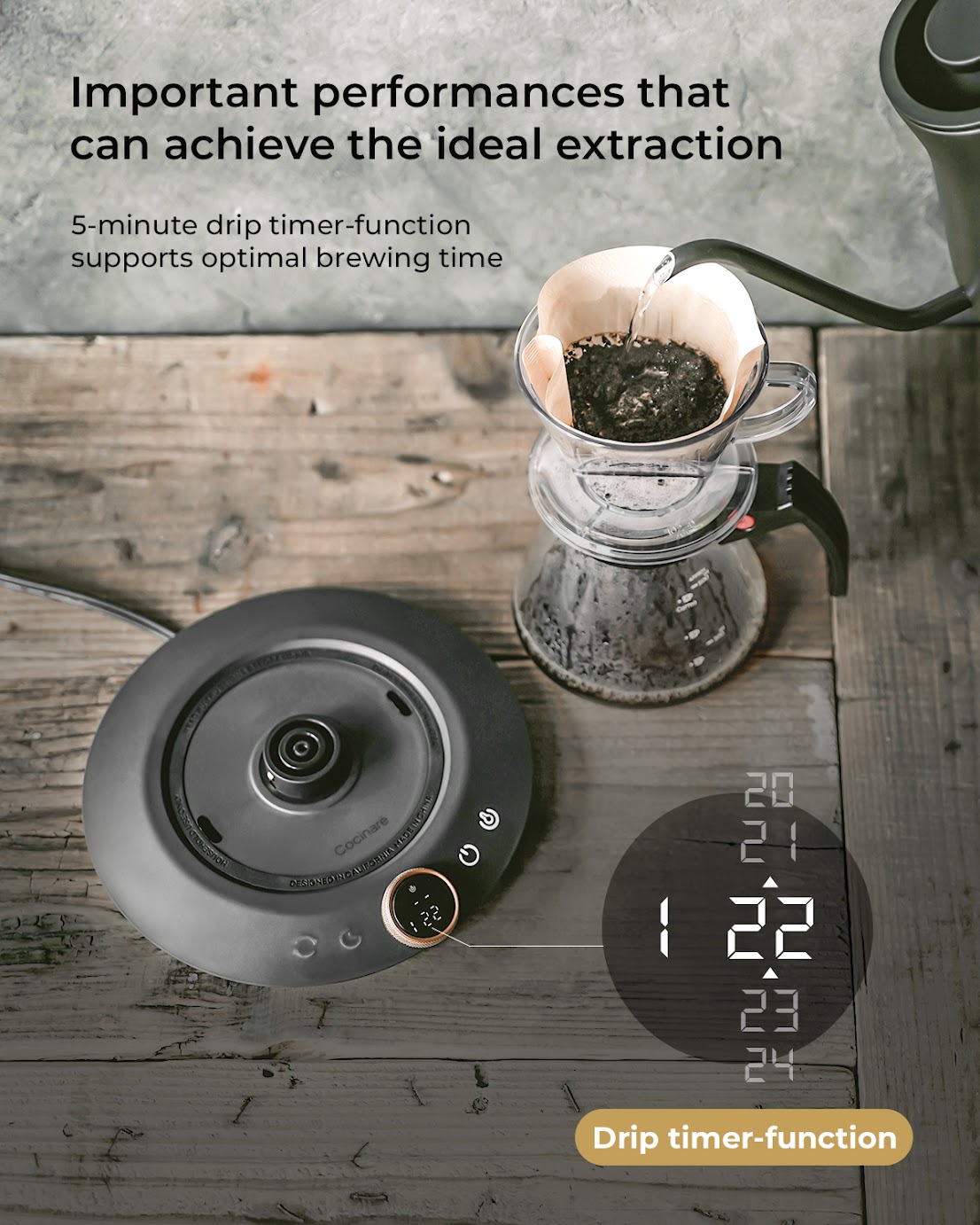 4. Equipped with a drip timer function of up to 5 minutes, allowing you to brew coffee at the optimal temperature and time.