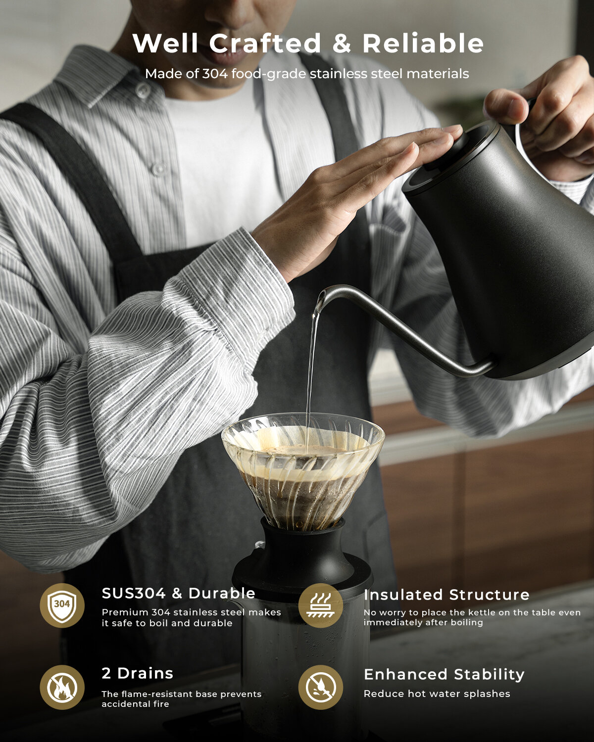 2. The carefully-designed gooseneck spout to enable precise and smooth water pouring