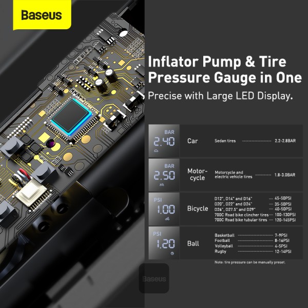 Tire pressure has a real impact on your safety and that of other road users. Check them and top up if necessary. As? Do it yourself: in the driveway, parking lot or in the garage. With the help of the compact and handy Baseus Smart Inflator Pump. This is a pump that every driver should have! It will check your tires in just 0.1 seconds, and it will take another 50 seconds to inflate them. It only takes two easy steps! In less than a minute, you'll be ready to hit the road, whether you're driving to your local supermarket or on a dream vacation out of town.