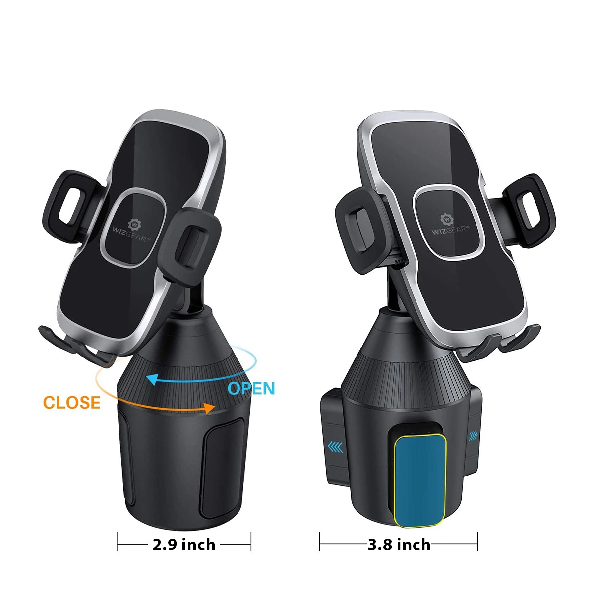 EXTENDABLE ARM: This cell phone cup holder for car is made with big and sturdy extendable arms designed with great adjustability and stability. With this car mount , there will be no hindrance in your view while driving.
