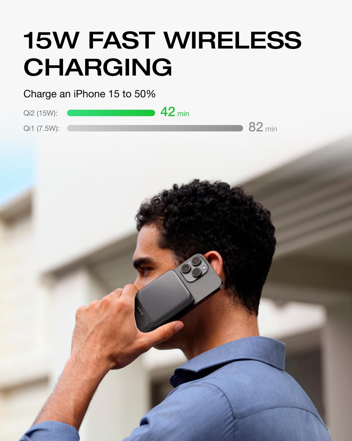 Qi2 15W Wireless Charging: Enjoy the convenience of 15W wireless charging, which is twice as fast as Qi1 7.5W charging, and backed by Qi2 certification, ensuring quick, safe, and efficient energy top-ups.