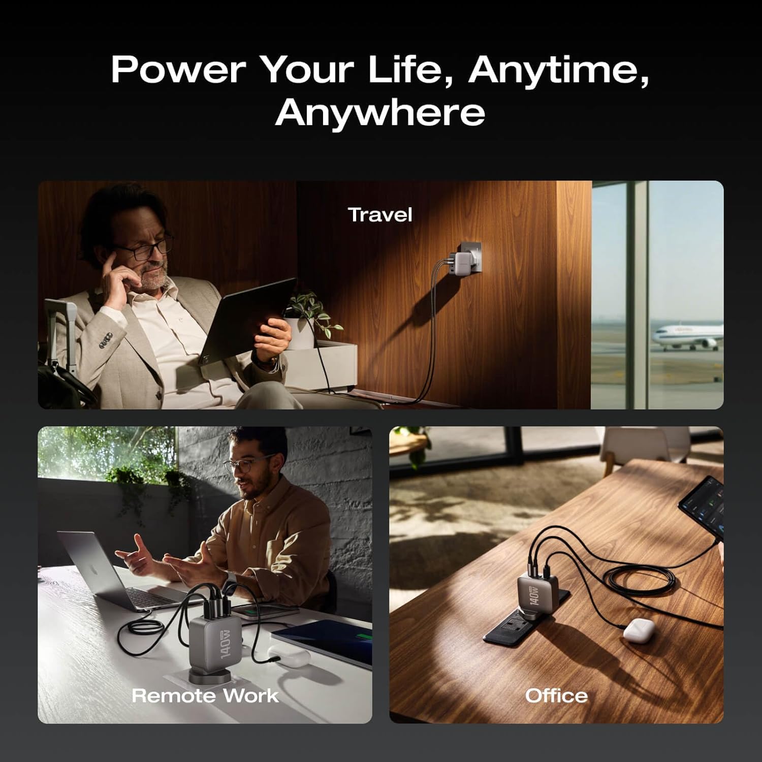 Portable with GaN Technology: The charger's compact design ensures it seamlessly fits into your setup without taking up space or interfering with other devices. It boasts a size that's about 36% smaller than other 140W USB-C power adapters.