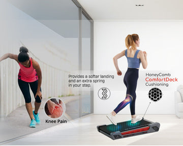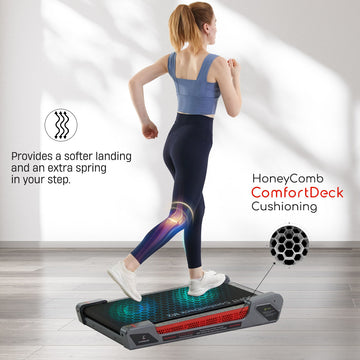 The Egofit ComfortDeck-M2 under desk treadmill features an advanced honeycomb cushioning deck that reduces impact on your joints, providing a smooth and comfortable walking experience.