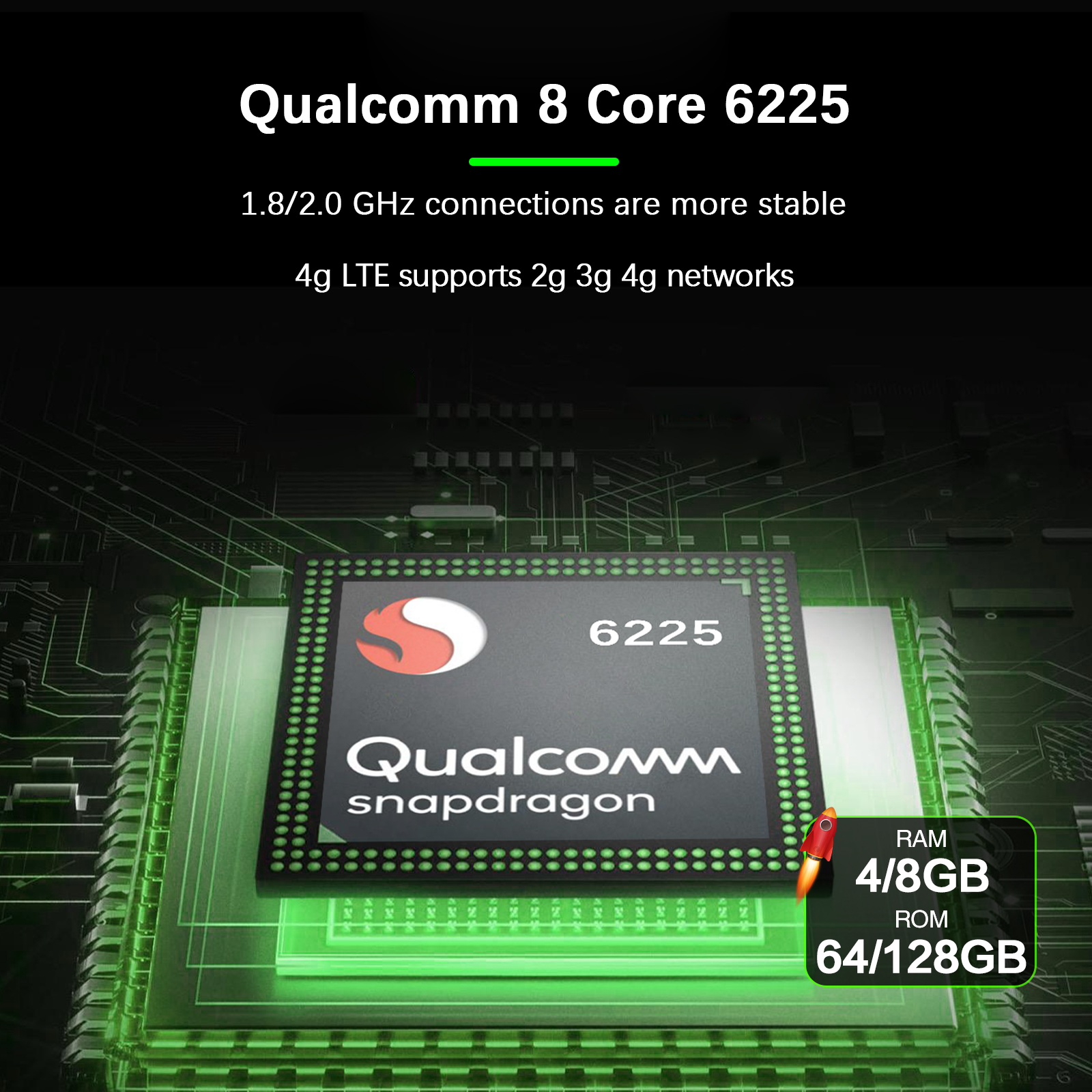 CPU: Qualcomm SM6225, 8-core (4×A73 @ 2.4GHz + 4×A53 @ 1.9GHz)