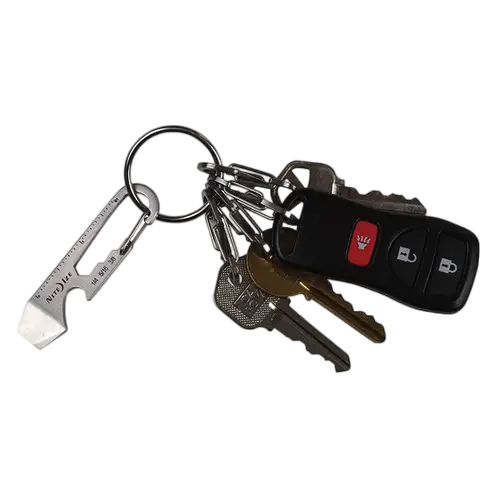 Compact multi tool easily clips onto keys or straps without adding bulk
