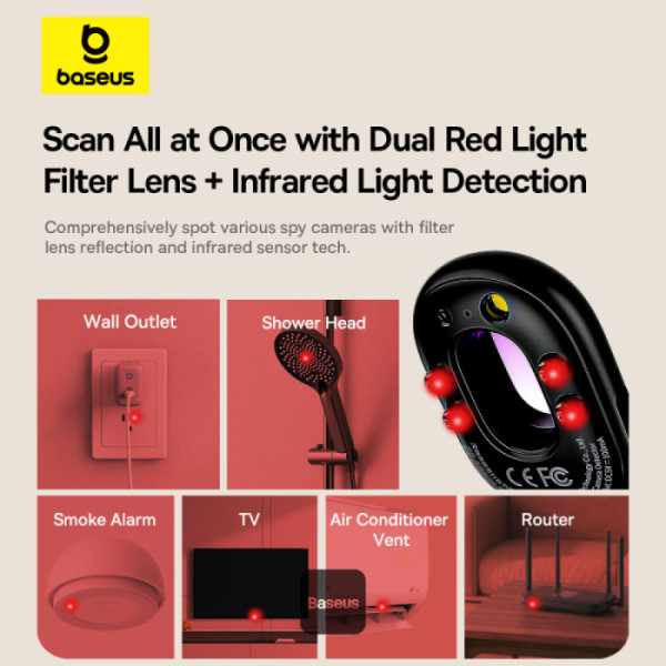 Stay secure in any environment with the Baseus Heyo Series II Infrared Camera Detector, designed for those who prioritize safety and privacy. This palm-sized, portable device instantly detects hidden cameras in hotel rooms, offices, or any personal space, using advanced infrared technology to uncover concealed surveillance devices in seconds. Equipped with dual infrared detection and multiple alarm modes (sound, red light, and vibration), it offers dependable protection and peace of mind, whether at home or on the go. Hang it on door or window handles for automatic intrusion alerts, or switch it into a bright LED flashlight for outdoor use.