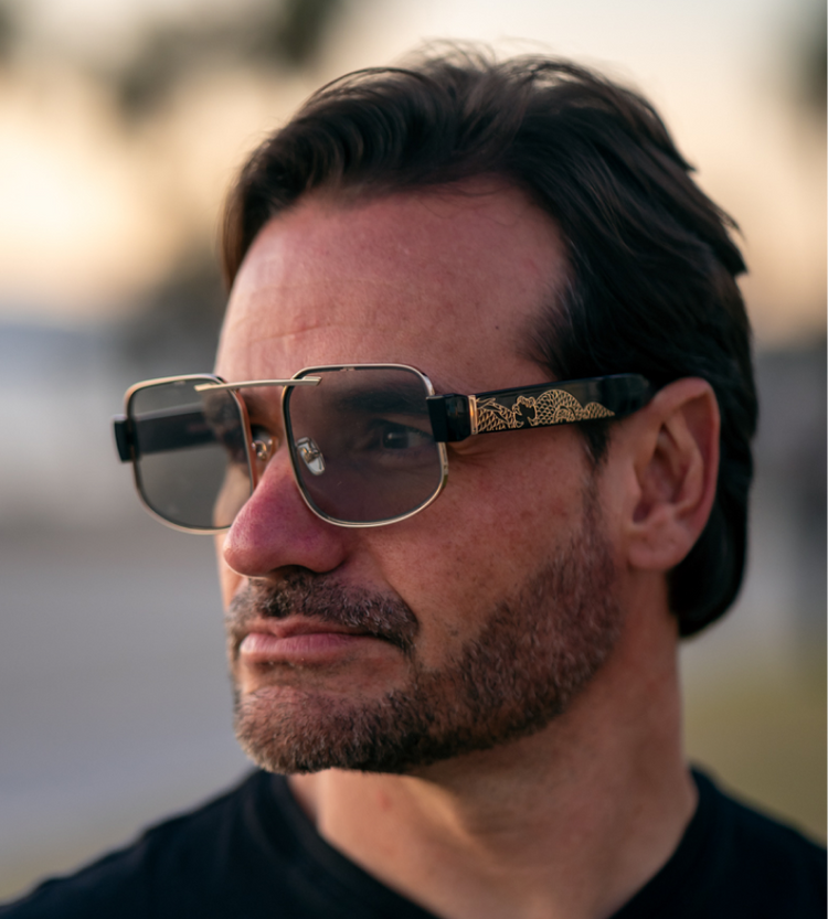 Dragon sunglasses fuse cutting-edge tint control with a bold square design, adjusting from 63% to 17% VLT with a seamless slide. Featuring polarized lenses, UV400 protection, and a water-resistant titanium frame, Dragon is built to turn heads—day or night.