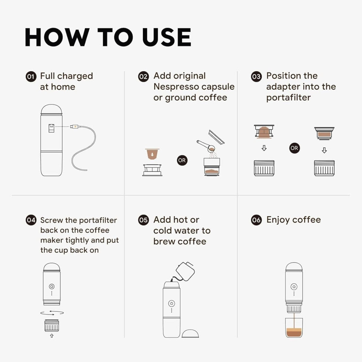 Electric automatic espresso machine: Fully automatic with rechargeable battery, one-button design, no need to press manually. The rechargeable portable coffee machine from icafilas is the best choice for enjoying up to 40ml real espresso at home, in the office and on the go.
