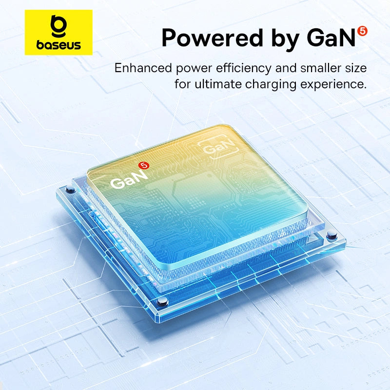 Utilizes GaN to reduce size while boosting efficiency and maintaining cool operation.