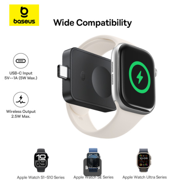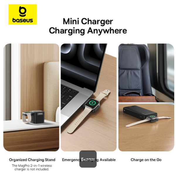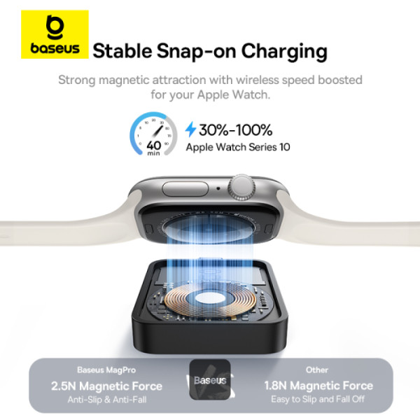 Power your Apple Watch with precision using the Baseus MagPro Magnetic Wireless Charger. With a sleek, ultra-portable design and reliable 2.5W magnetic charging, this Type-C charger ensures fast, safe power for your Apple Watch—at home, in the office, or on the go. Built with MagSafe-compatible magnets, it attaches securely for efficient charging and peace of mind.
