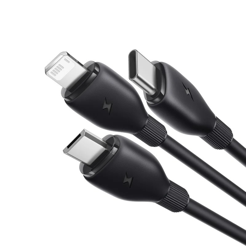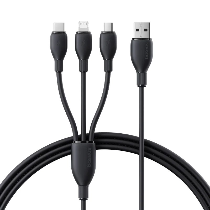 Home > Products > Baseus Ultra-Fast 3-in-1 USB-A to M+L+C 3.5A 1.3m Charging Cable – Black